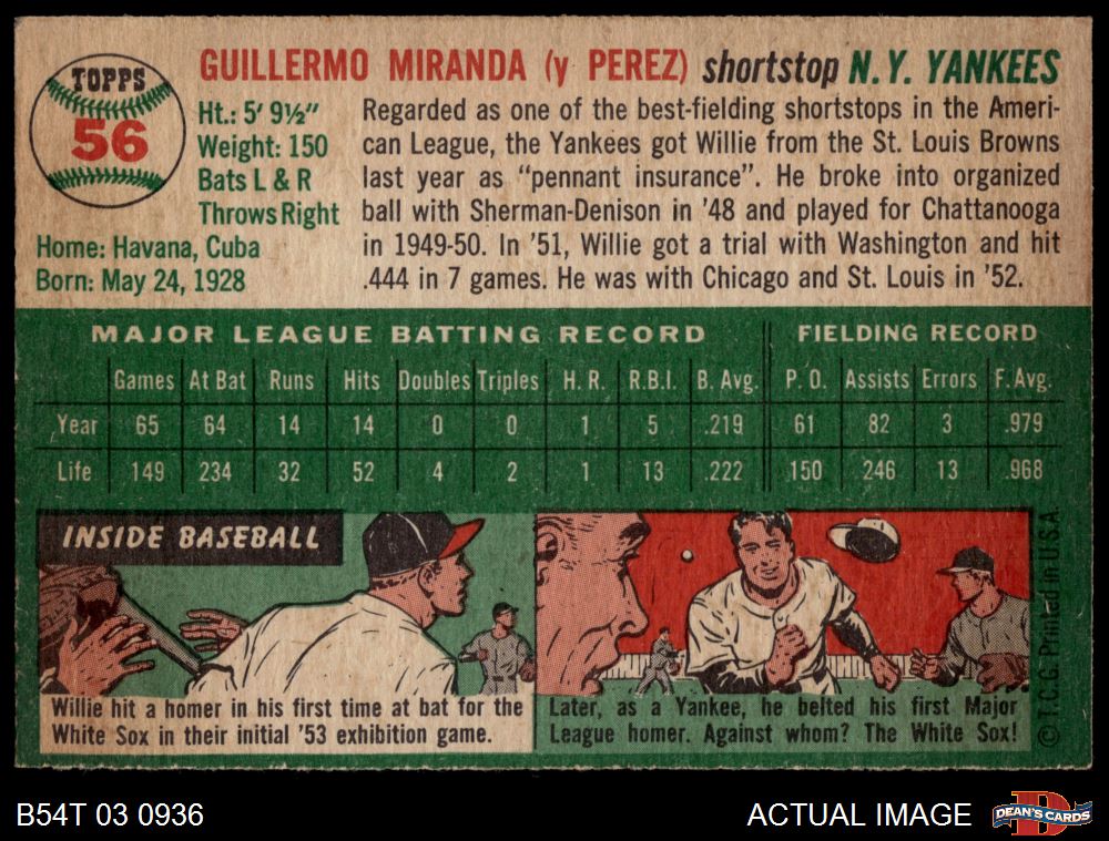1954 Topps #56 Willie Miranda 4 - VG/EX