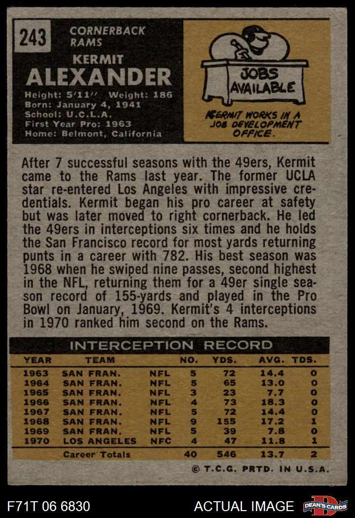 1971 Topps #243 Kermit Alexander 4 - VG/EX