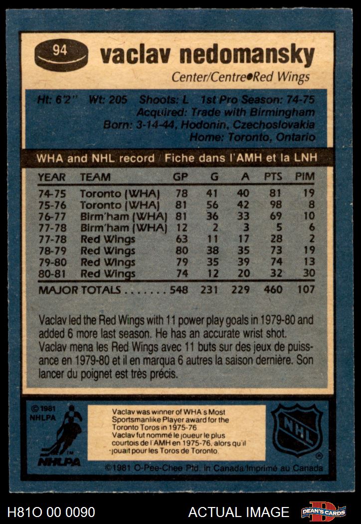 1981 O-Pee-Chee #94 Vaclav Nedomansky