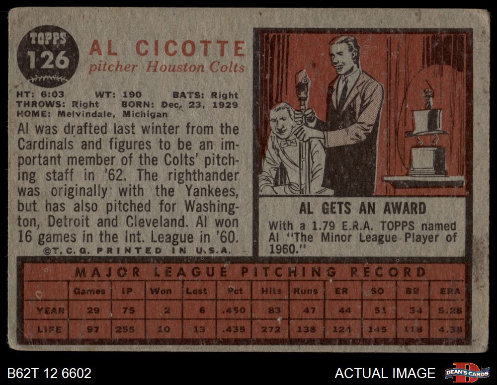 1962 Topps #126 GRN Al Cicotte