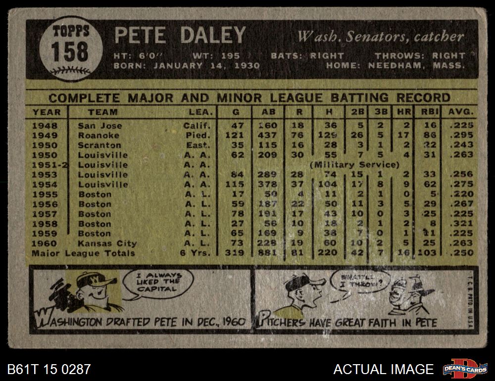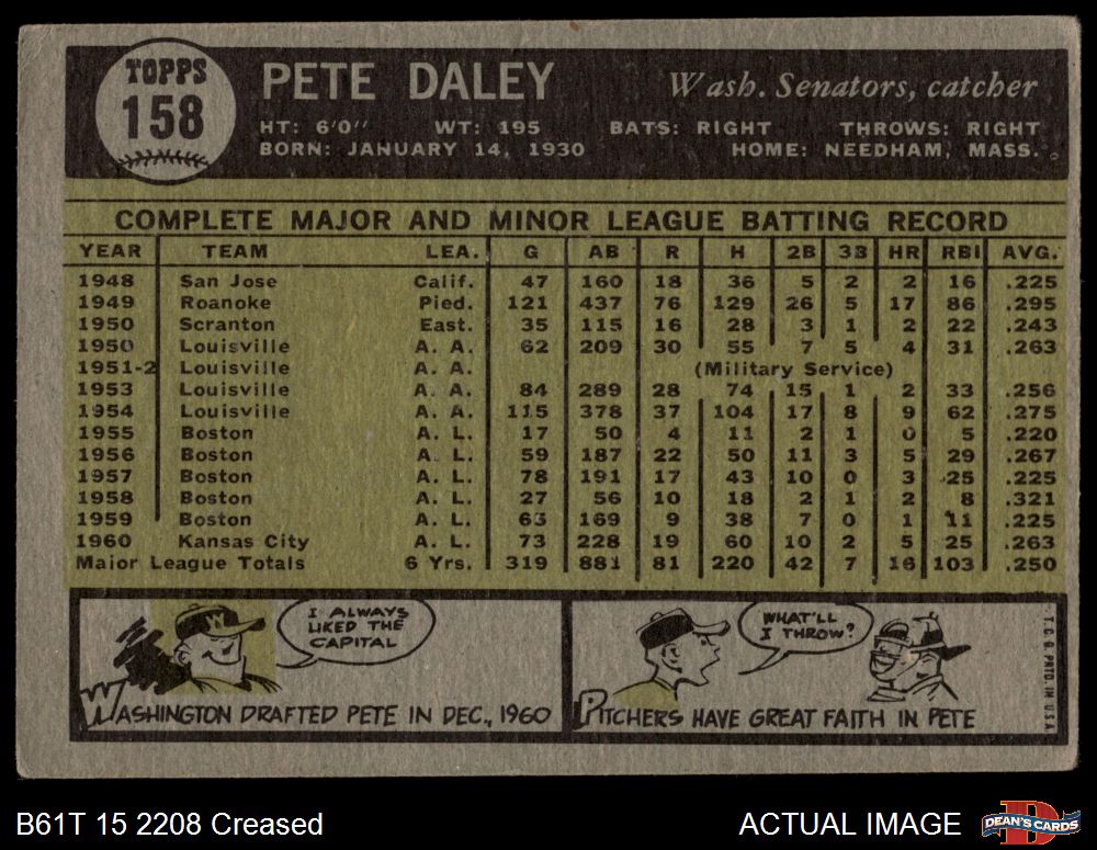 1961 Topps Baseball Cards (10,654 available)1961 Topps Senators (651 available)