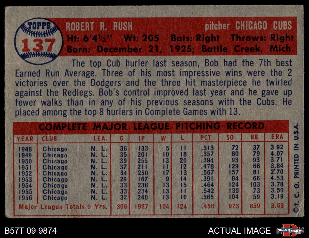 1957 Topps #137 Bob Rush 1.5 - FAIR