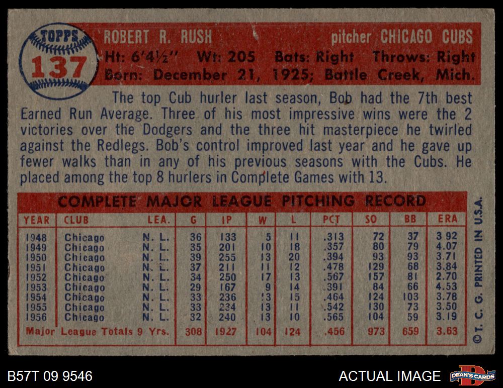1957 Topps #137 Bob Rush 4.5 - VG/EX+