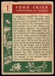 1959 Topps #1  -  Ford Frick Commissioner Front Thumbnail