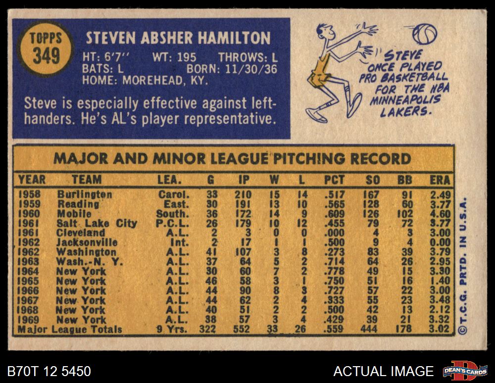 1970 Topps #349 Steve Hamilton 6 - EX/MT