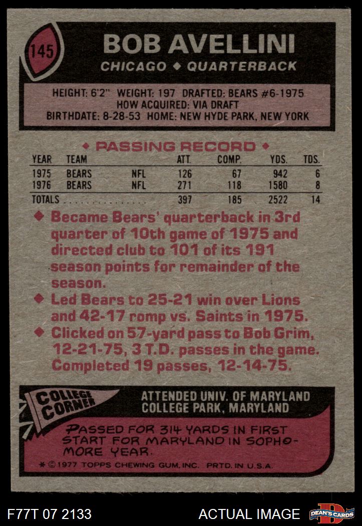 1977 Topps #145 Bob Avellini 4 - VG/EX