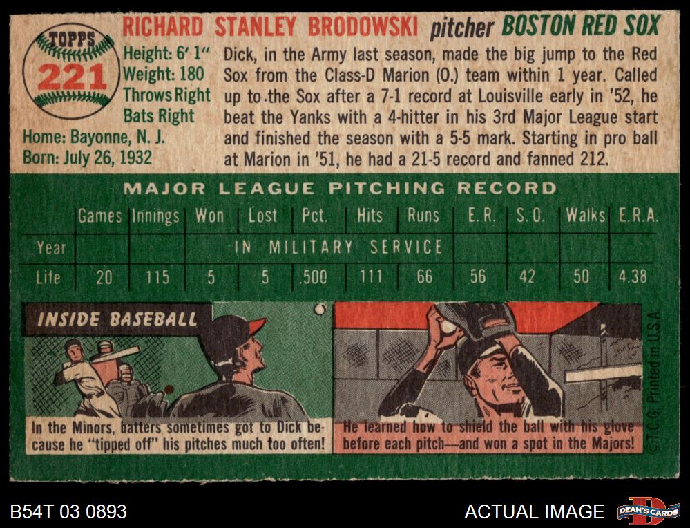 1954 Topps #221 Dick Brodowski 4 - VG/EX