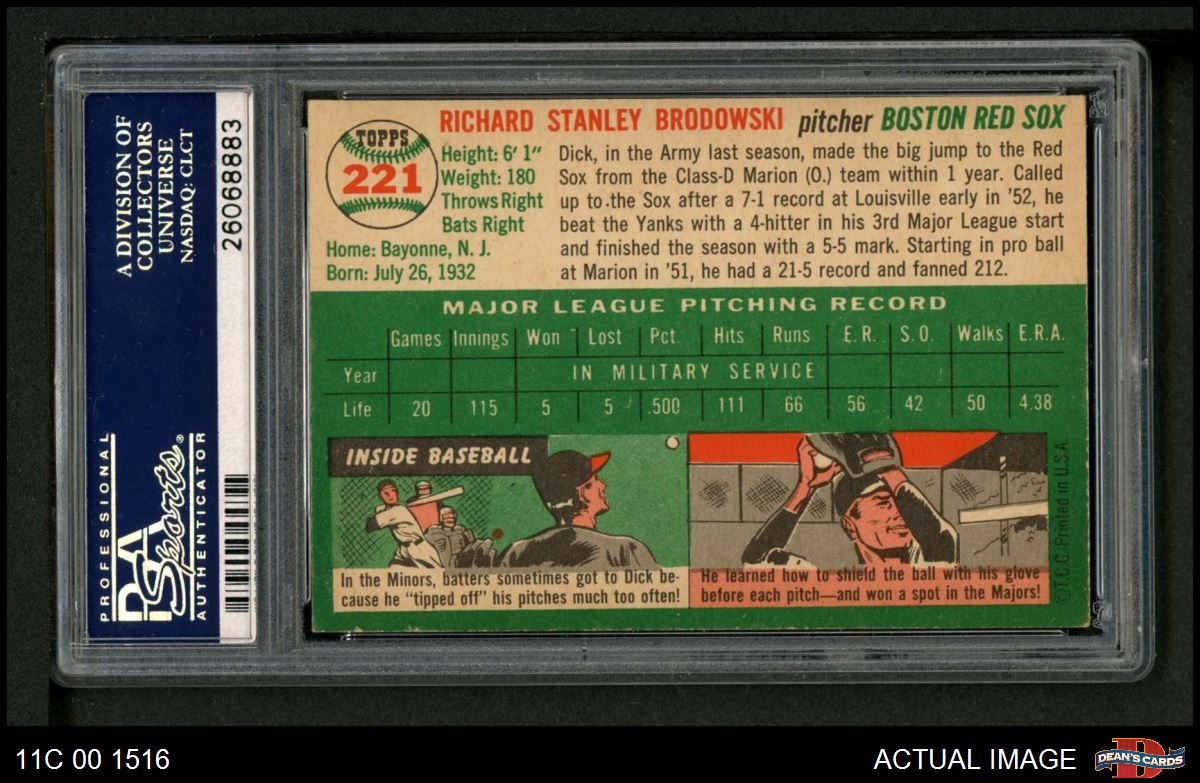 1954 Topps #221 Dick Brodowski PSA 6 - EX/MT