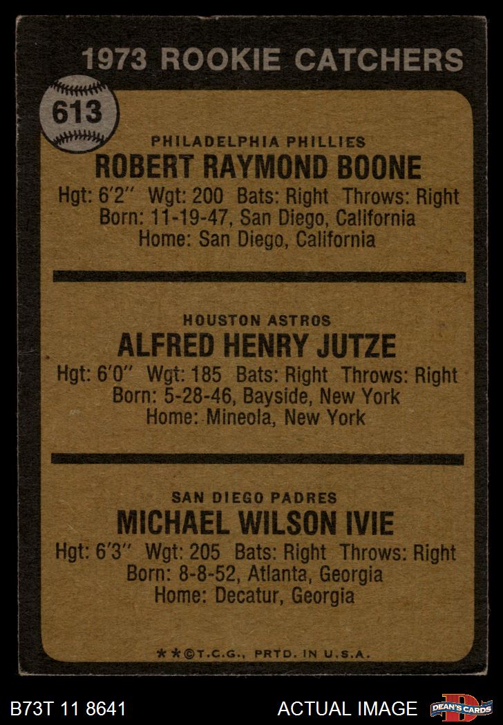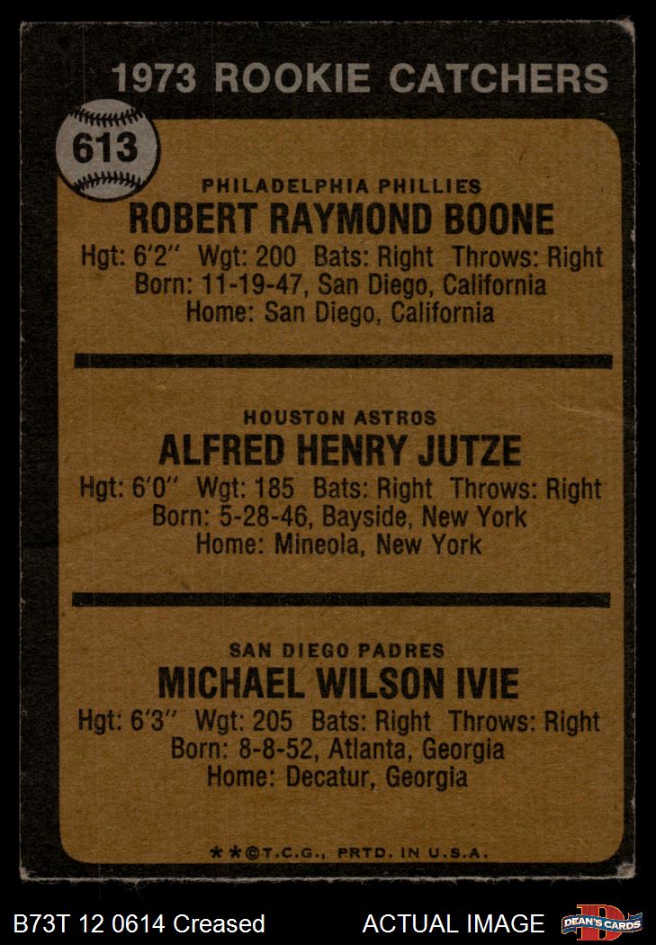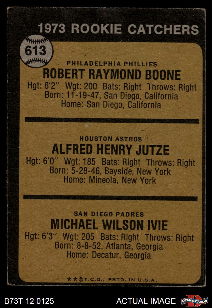 1973 Topps #613 - Bob Boone / Mike Ivie / Skip Jutze Rookie Catchers 2 - GOOD