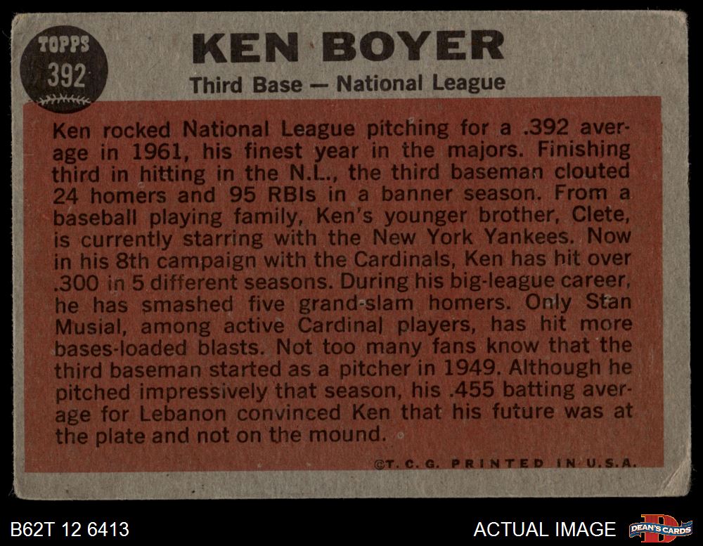 1962 Topps #392 - Ken Boyer All-Star 1 - POOR