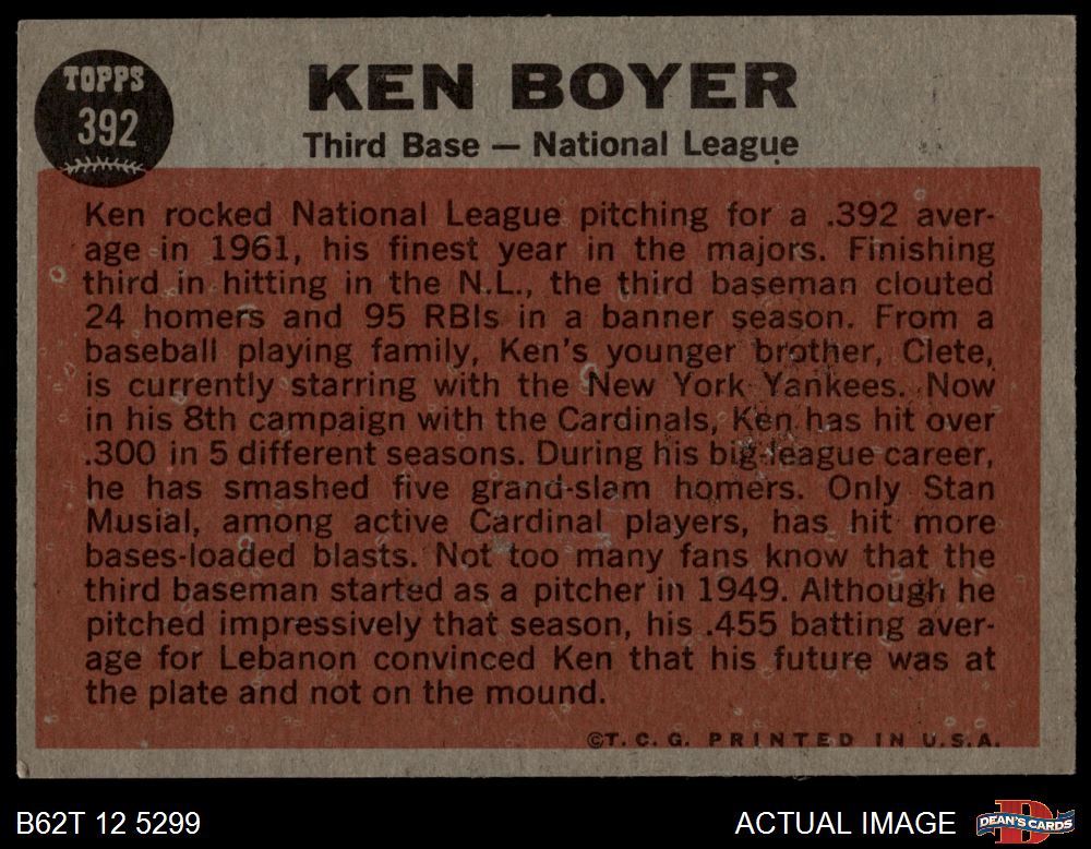 1962 Topps #392 - Ken Boyer All-Star 3 - VG