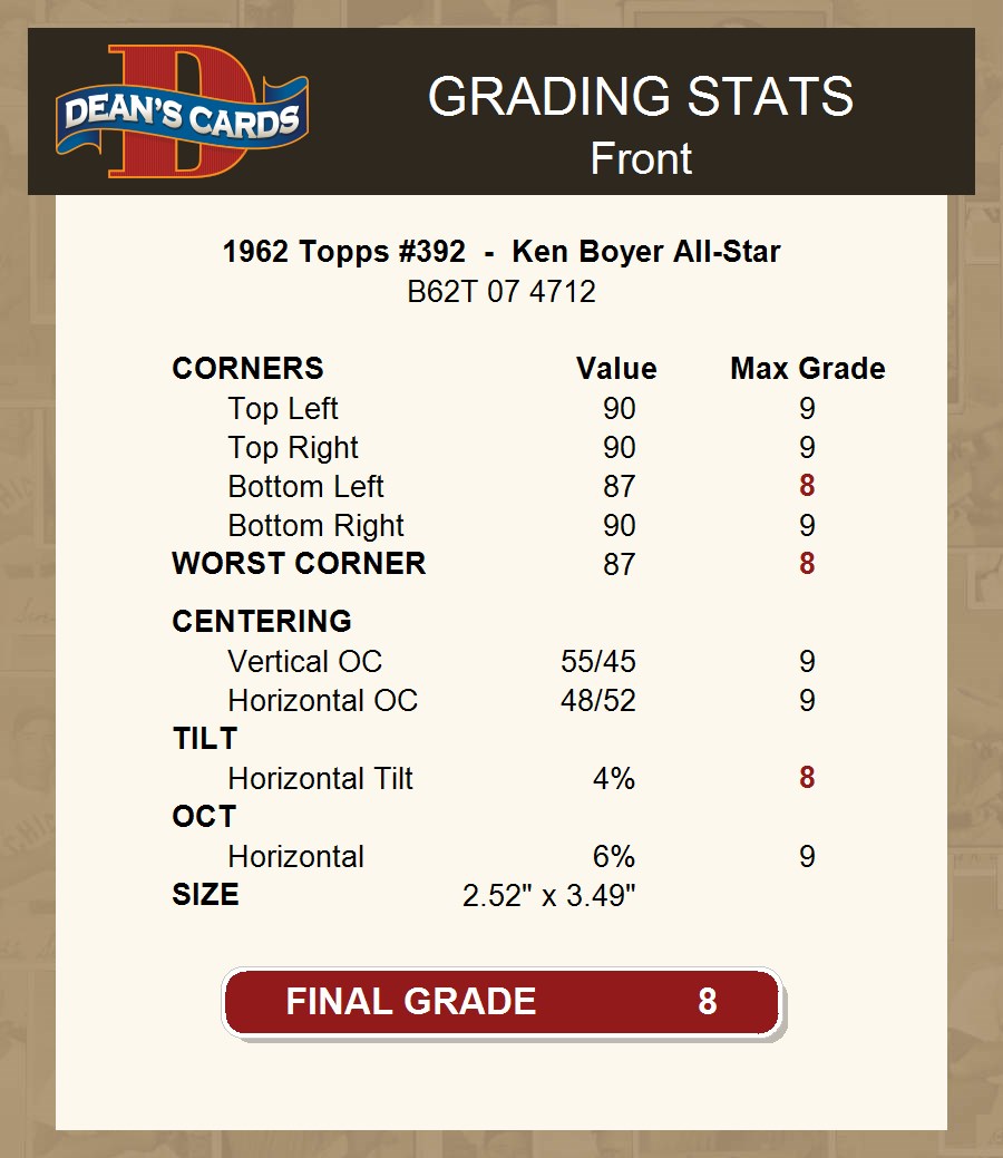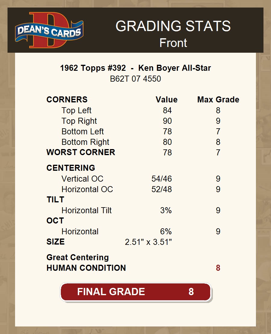 1962 Topps #392 - Ken Boyer All-Star 8 - NM/MT
