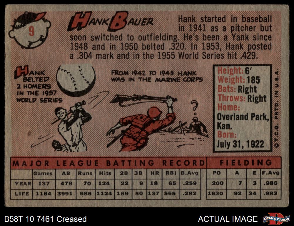 1958 Topps #9 Hank Bauer 2 - GOOD