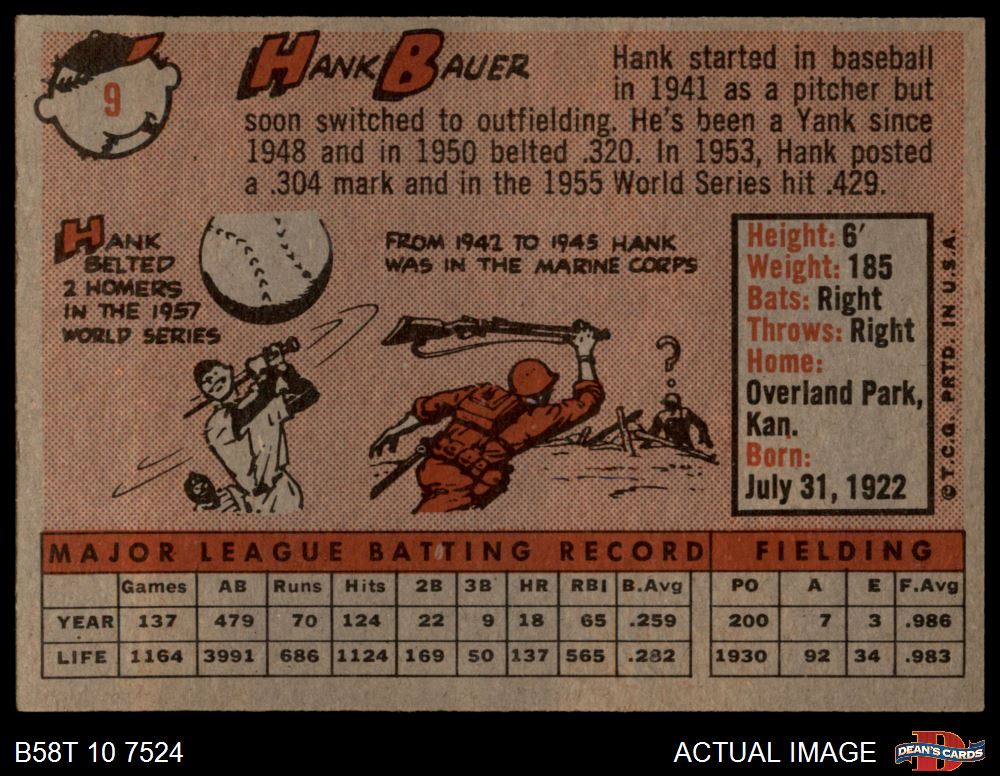 1958 Topps #9 Hank Bauer 5.5 - EX+