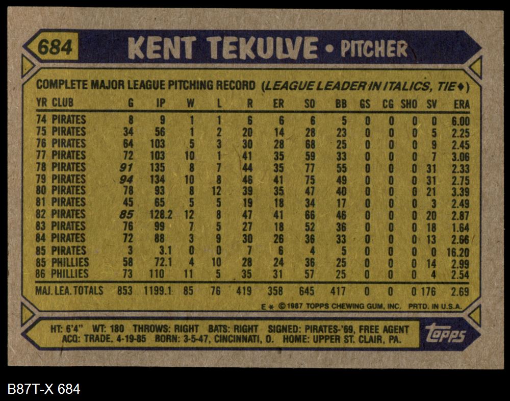 1987 Topps #684 Kent Tekulve
