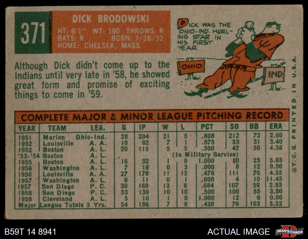 1959 Topps #371 Dick Brodowski 3.5 - VG+