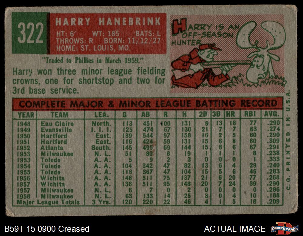 1959 Topps #322 xTR Harry Hanebrink 2 - GOOD