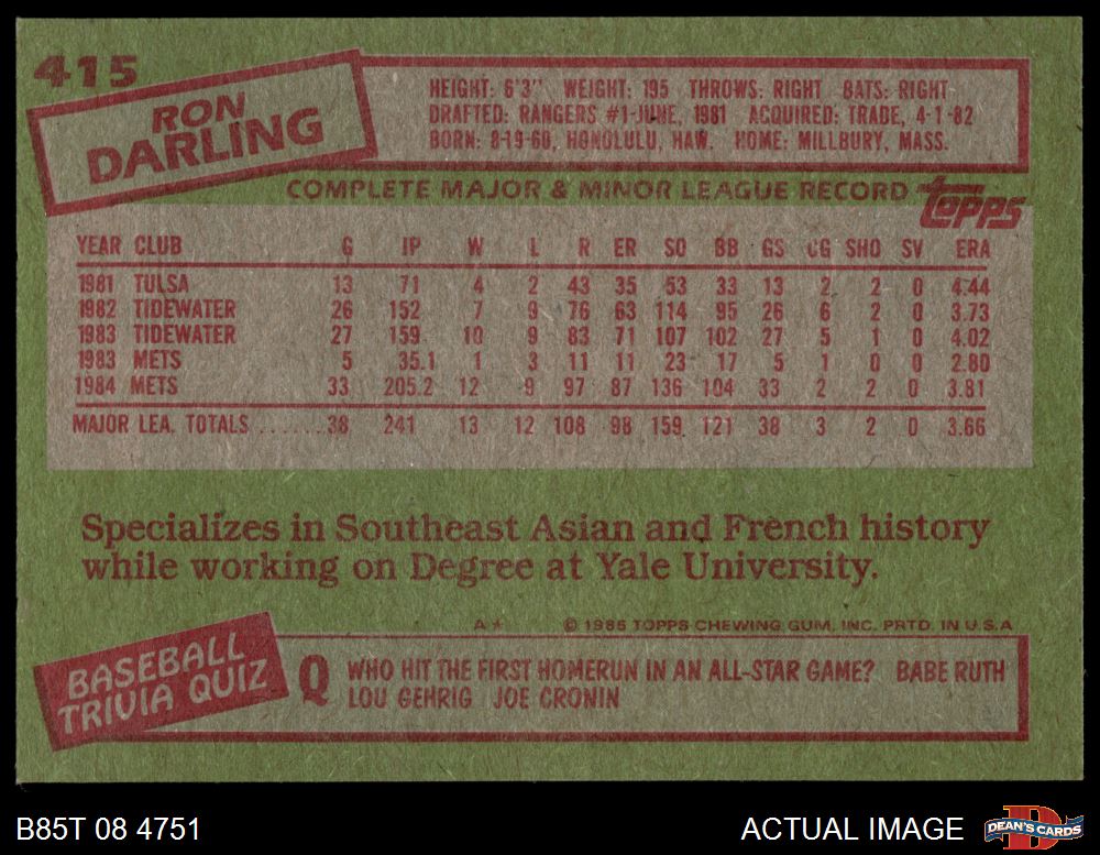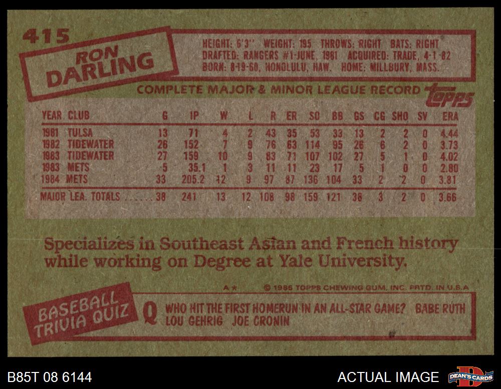 1985 Topps #415 Ron Darling