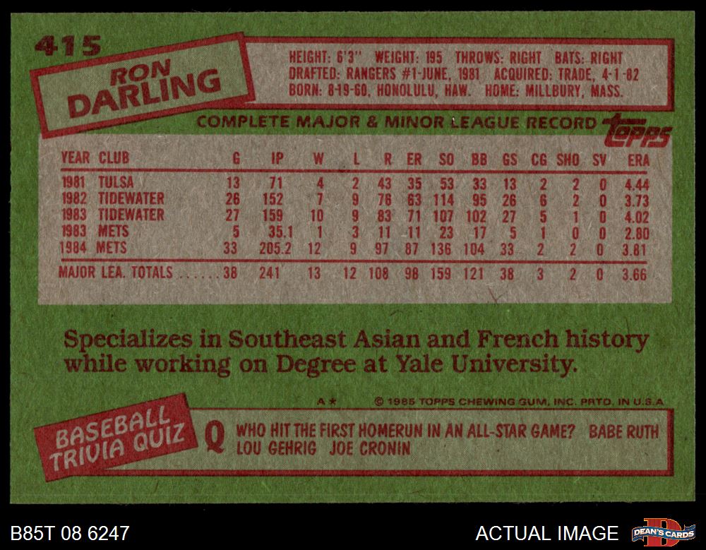 1985 Topps #415 Ron Darling 8.5 - NM/MT+