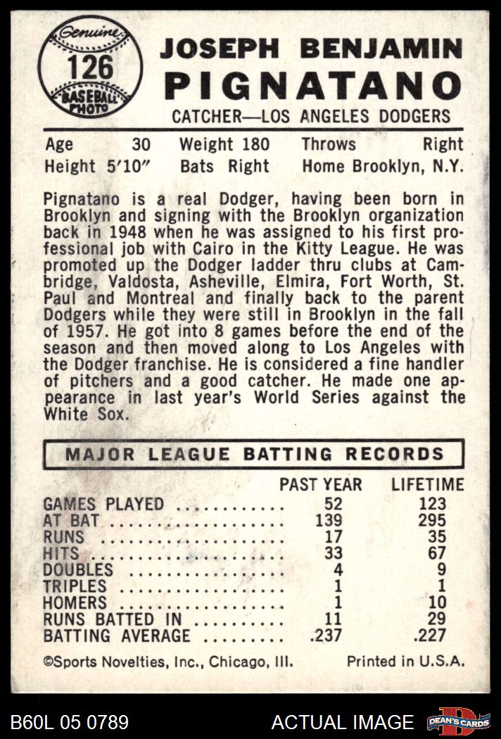 1960 Leaf #126 Joe Pignatano 5 - EX