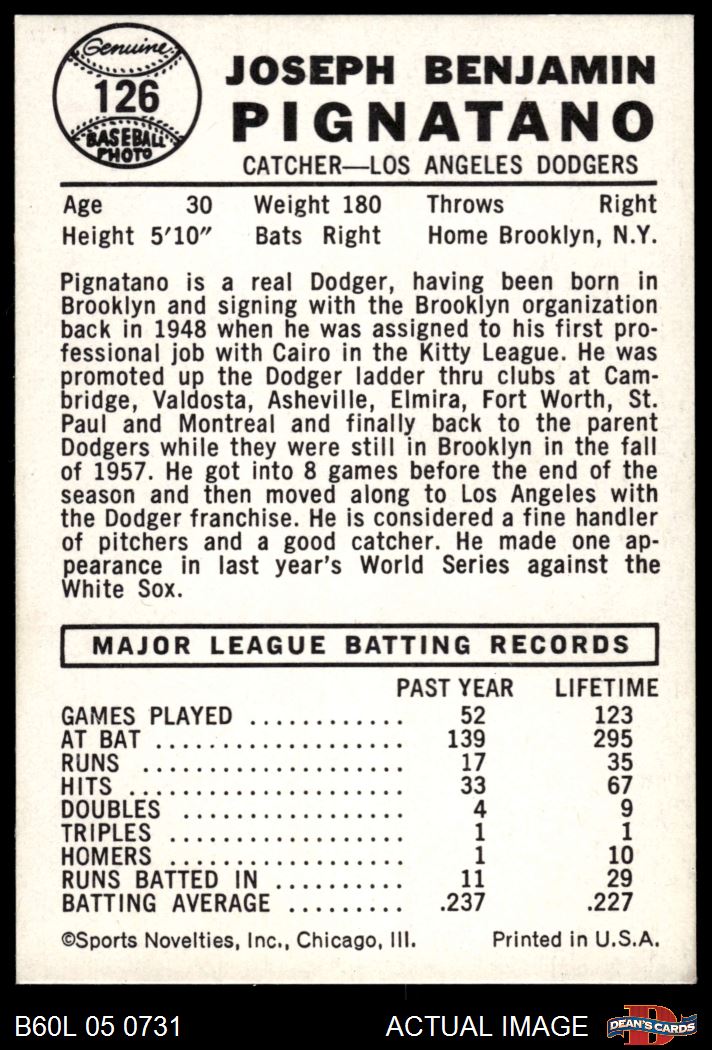 1960 Leaf #126 Joe Pignatano 6 - EX/MT