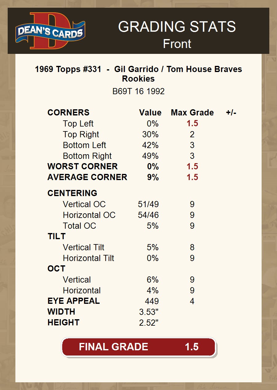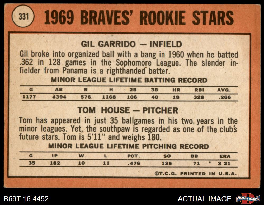 1969 Topps #331 - Gil Garrido / Tom House Braves Rookies 1.5 - FAIR