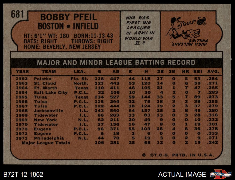 1972 Topps #681 Bobby Pfeil 8 - NM/MT