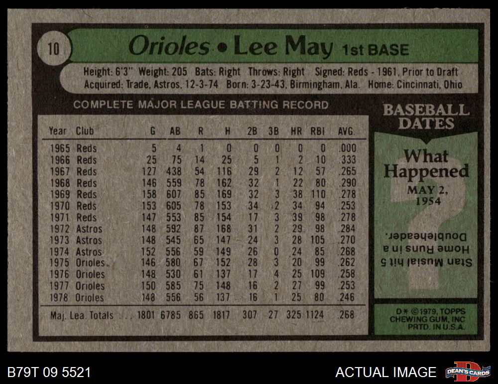 1979 Topps #10 Lee May 5 - EX