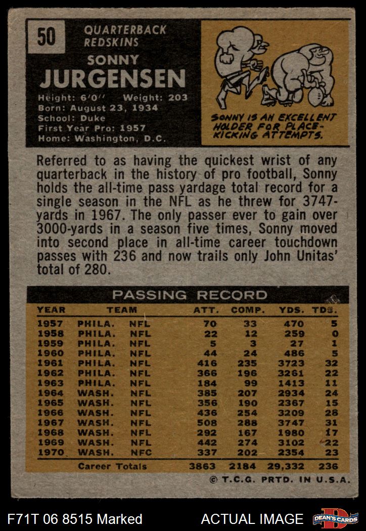 1971 Topps #50 Sonny Jurgensen Front Thumbnail
