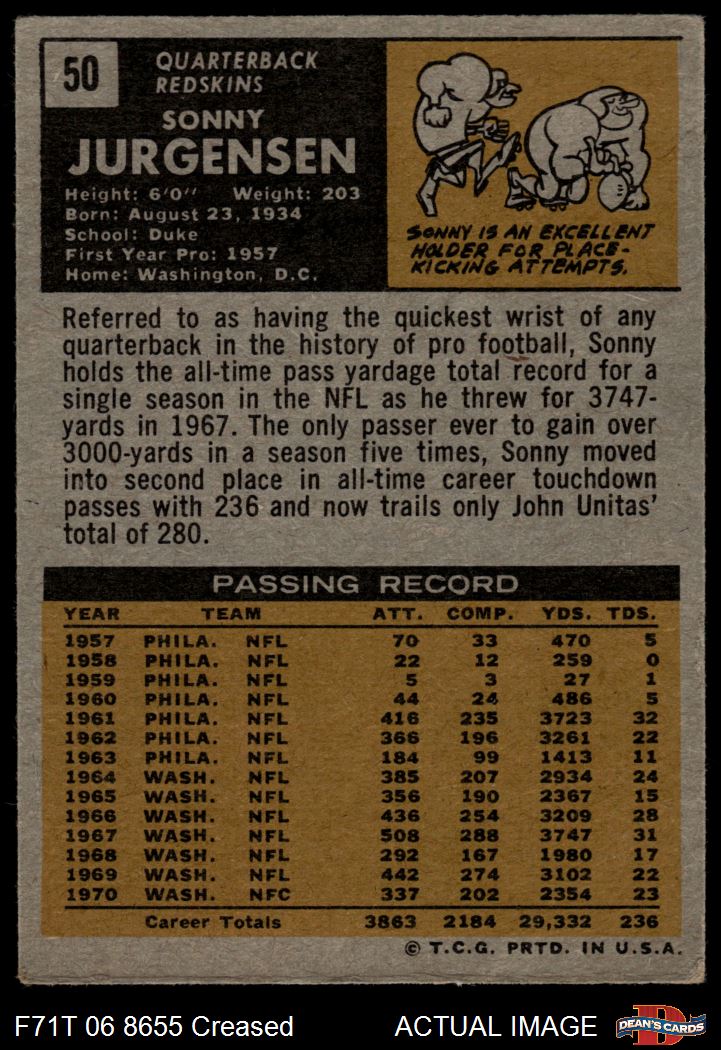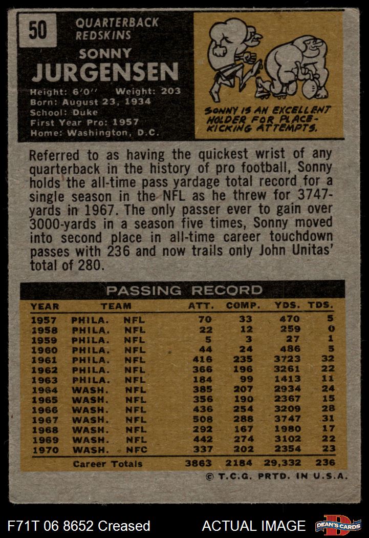 1971 Topps #50 Sonny Jurgensen