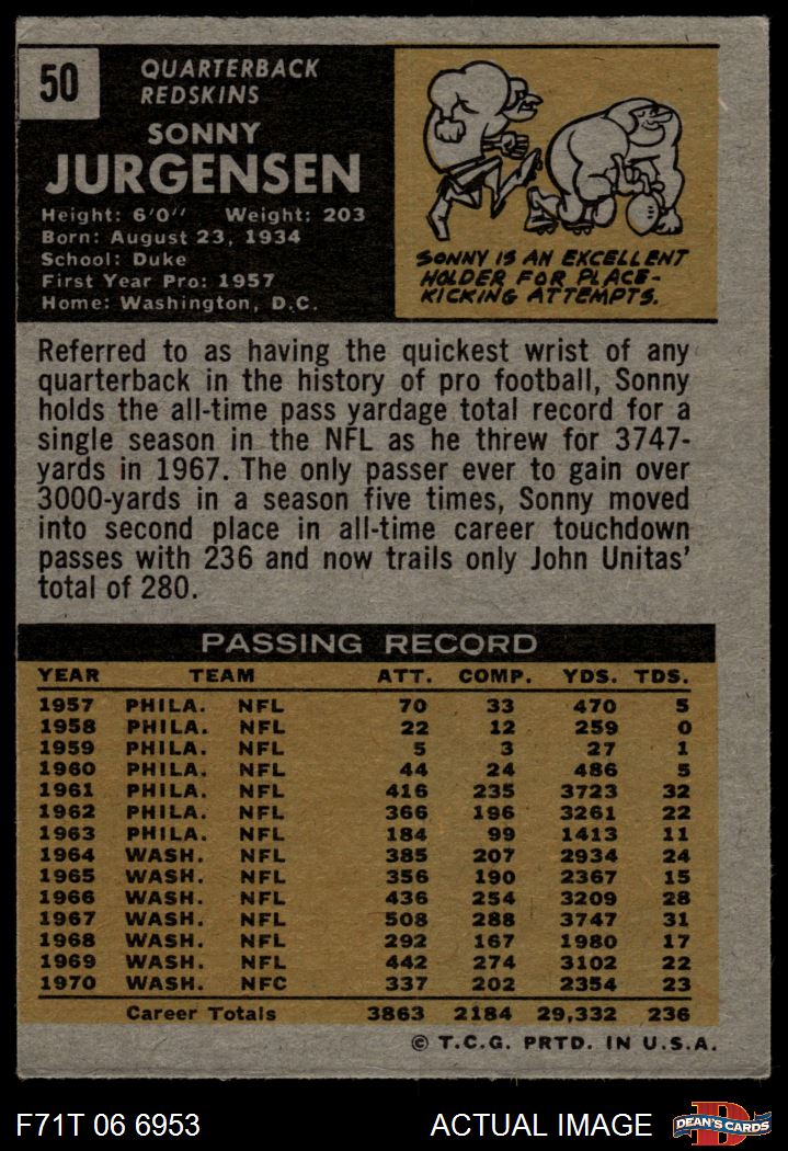 1971 Topps #50 Sonny Jurgensen 3 - VG