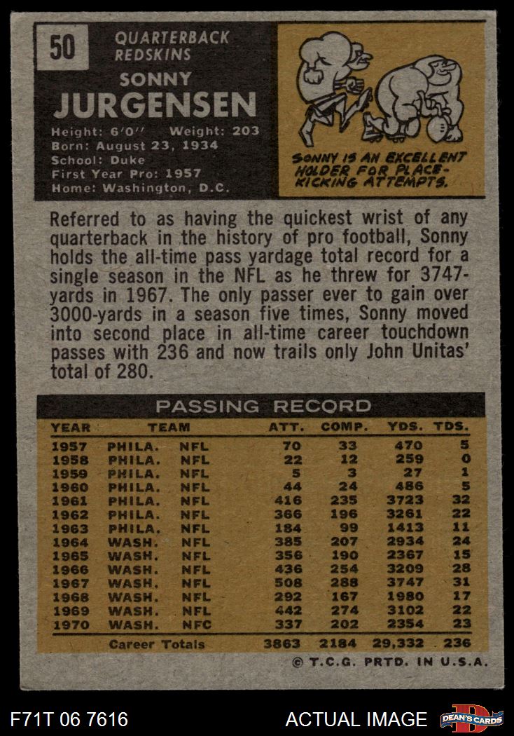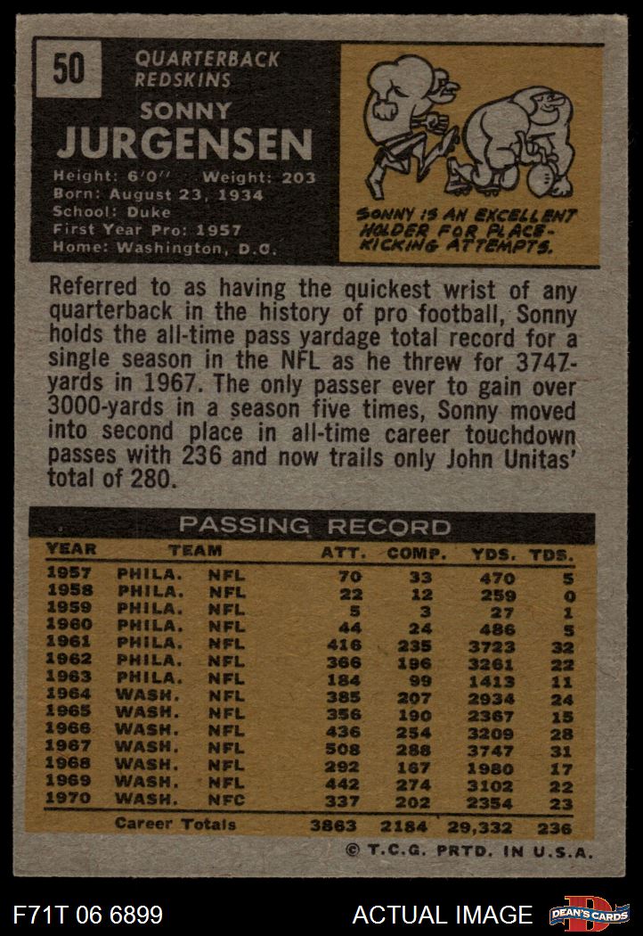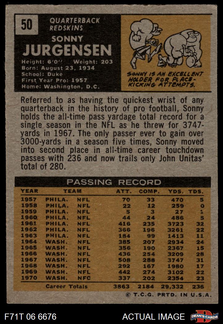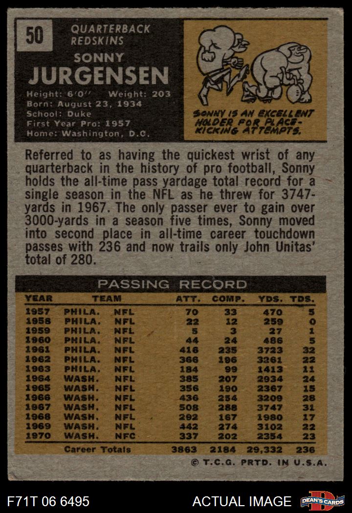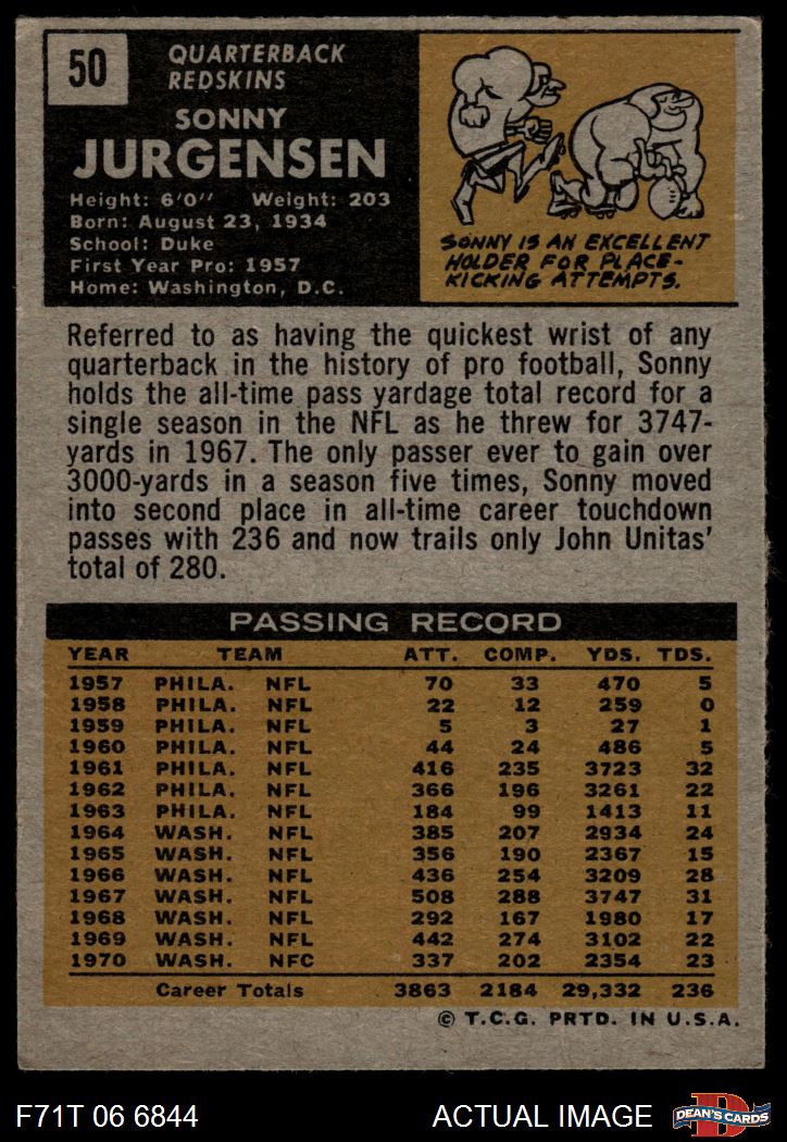 1971 Topps #50 Sonny Jurgensen 4 - VG/EX