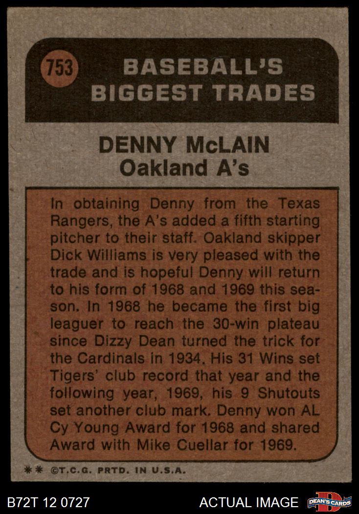 1972 Topps #753 - Denny McLain Traded 3 - VG