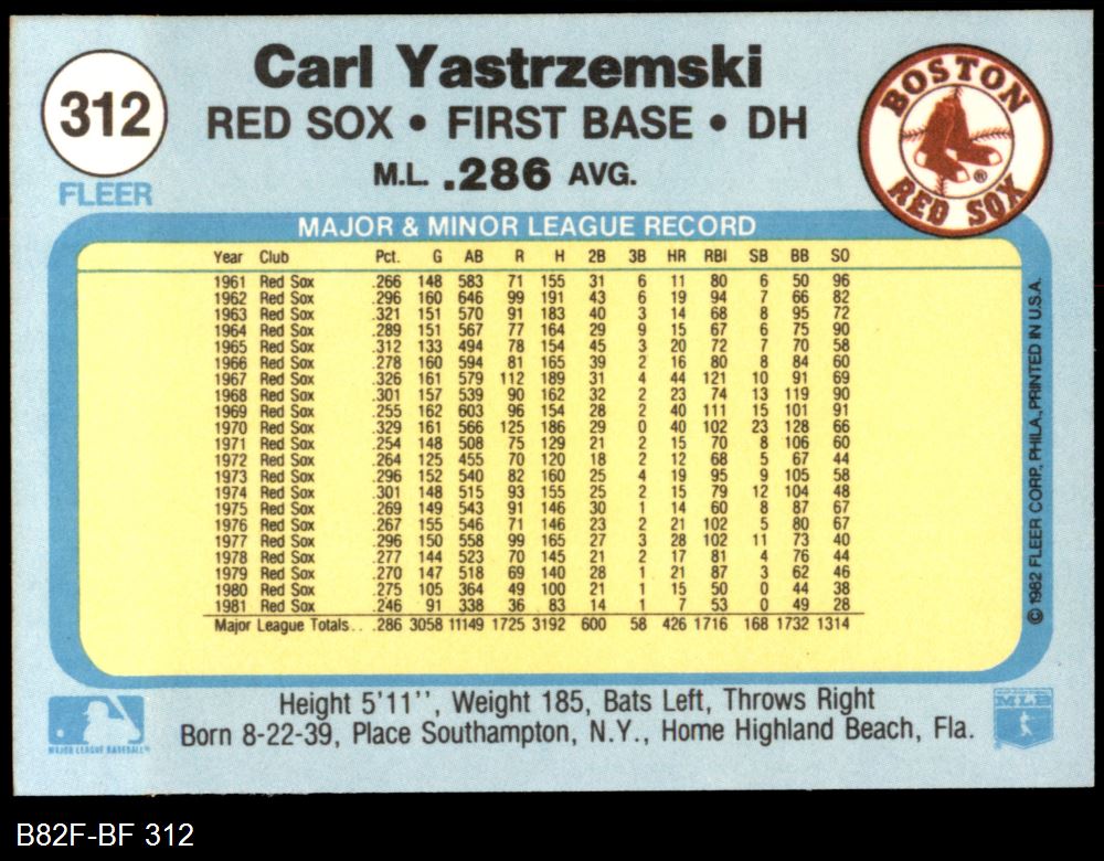1982 Fleer #312 Carl Yastrzemski 8 - NM/MT