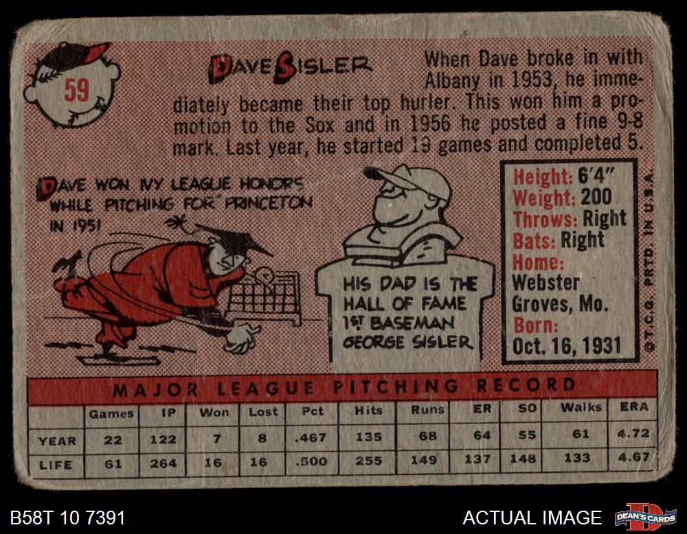 1958 Topps #59 Dave Sisler AUTHENTIC