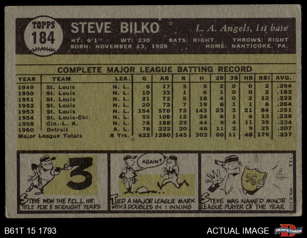 1961 Topps #184 Steve Bilko