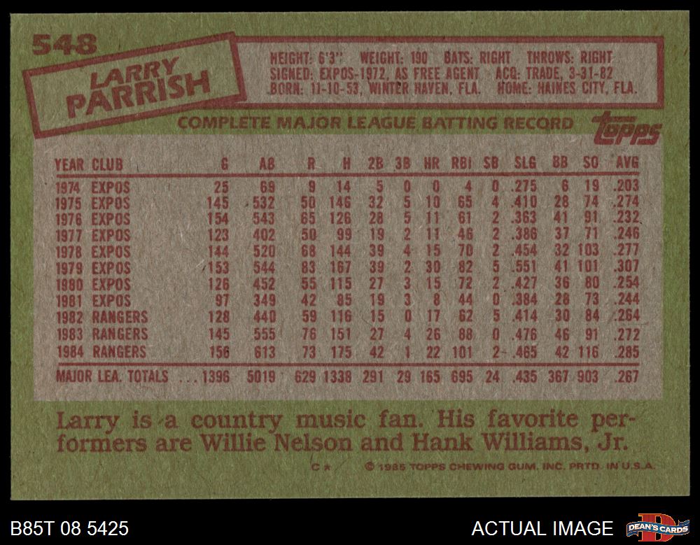 1985 Topps #548 Larry Parrish 8.5 - NM/MT+