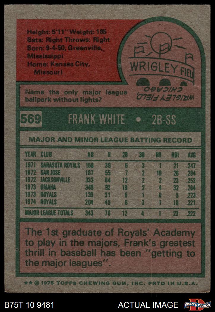 1975 Topps #569 Frank White 4 - VG/EX