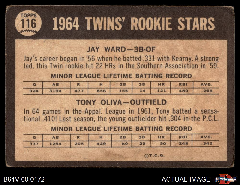 1964 Topps Venezuelan #116 - Tony Oliva / Jay Ward Twins Rookies 1.5 - FAIR