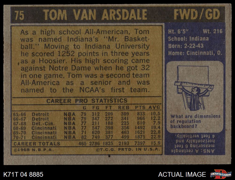 1971 Topps #75 Tom Van Arsdale