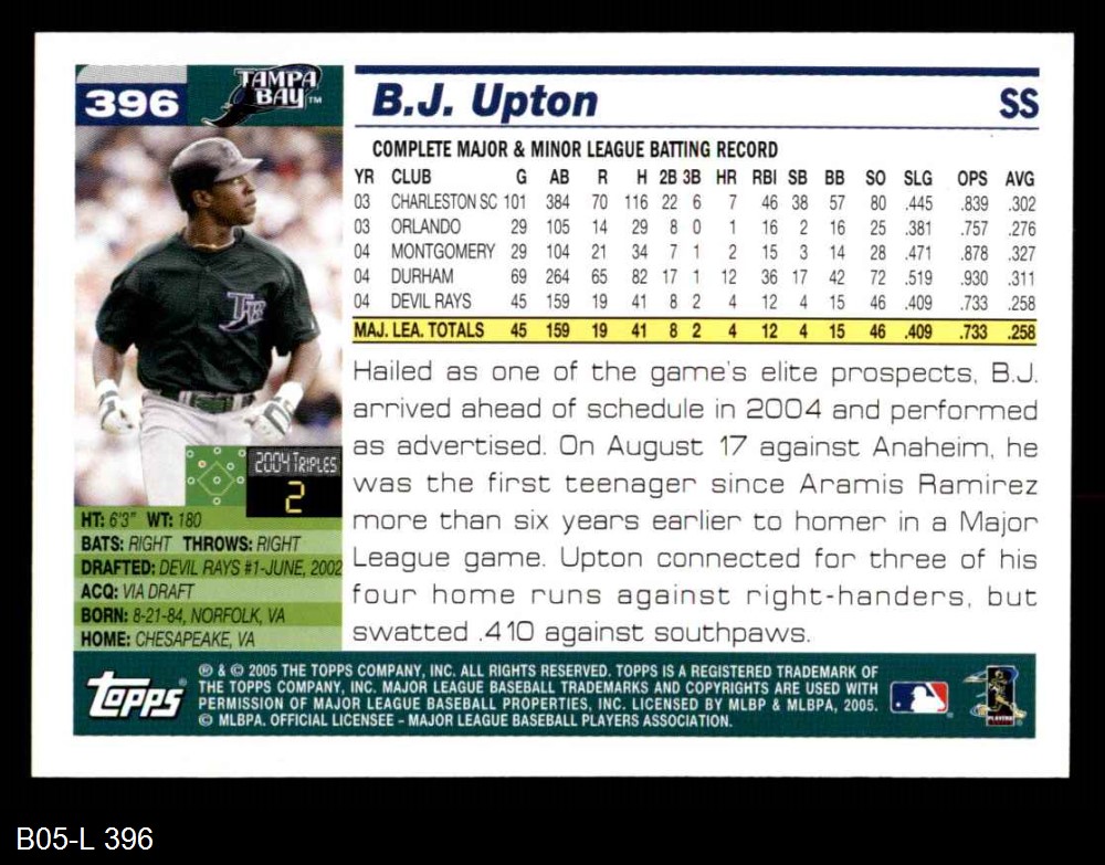 2005 Topps #396 B.J. Upton 8 - NM/MT
