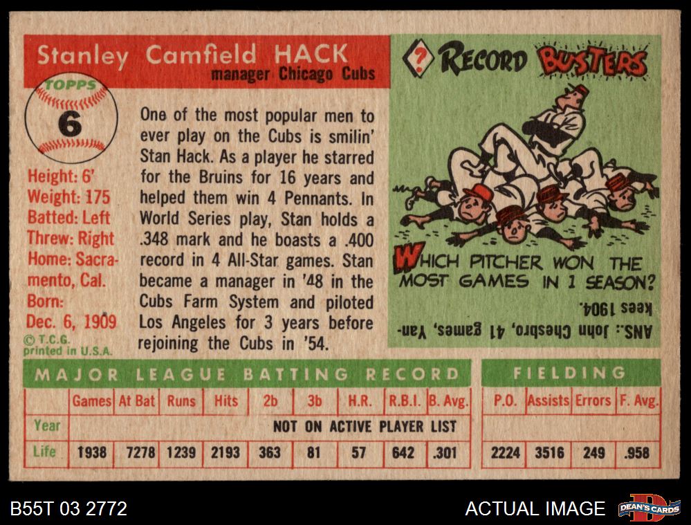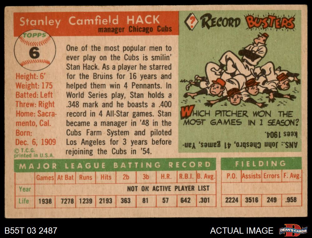1955 Topps #6 Stan Hack 4 - VG/EX