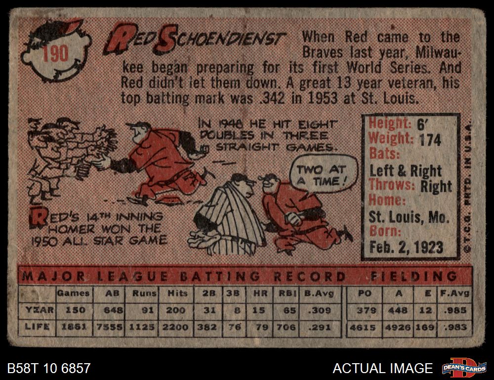 1958 Topps #190 Red Schoendienst 1 - POOR