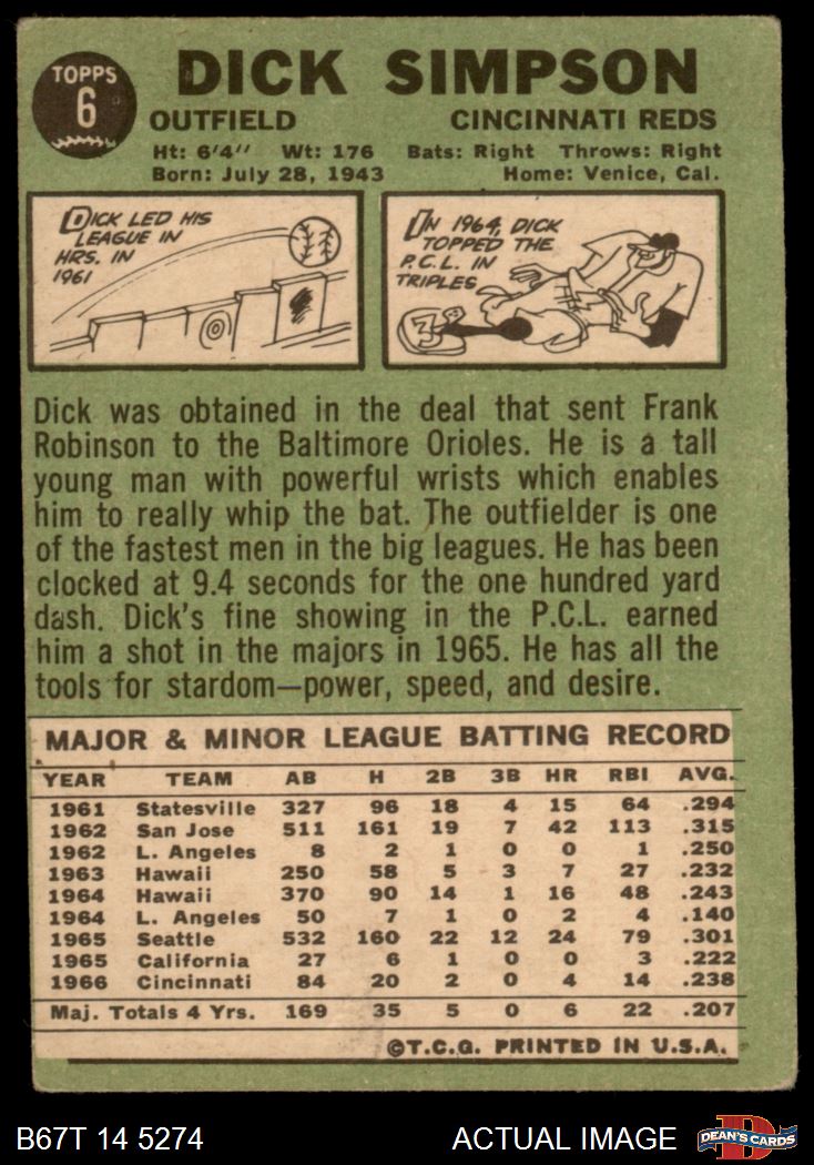 1967 Topps #6 Dick Simpson 1.5 - FAIR