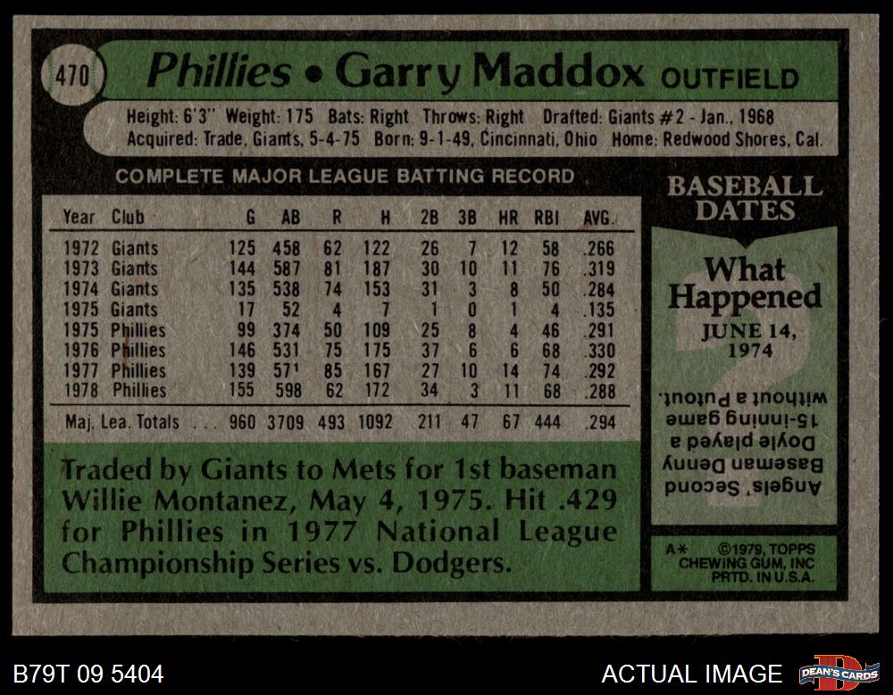 1979 Topps #470 Garry Maddox
