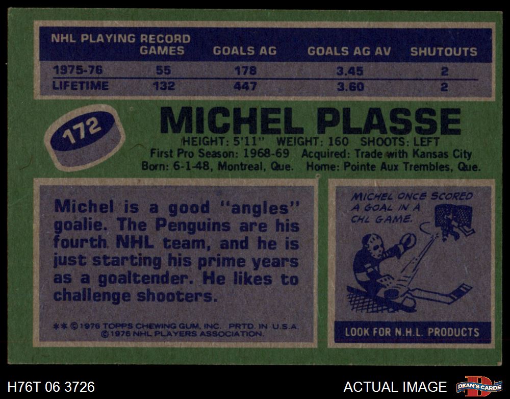 1976 Topps #172 Michel Plasse 6 - EX/MT