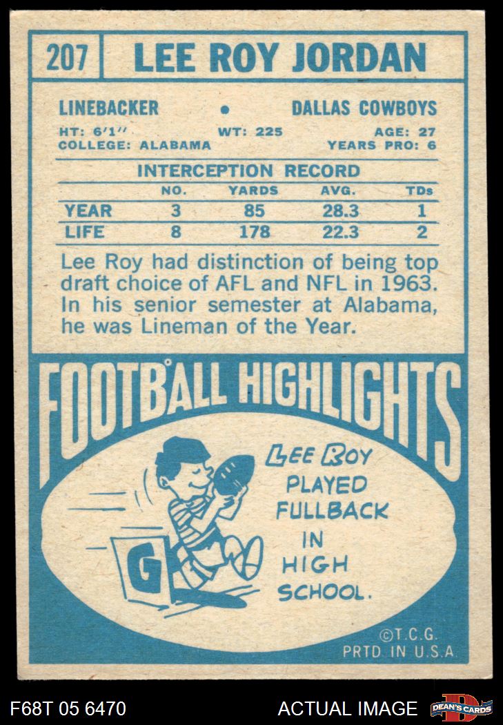 1968 Topps #207 Lee Roy Jordan