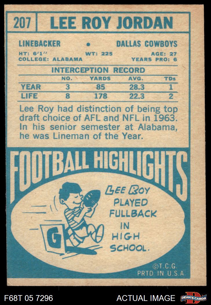 1968 Topps #207 Lee Roy Jordan 3 - VG