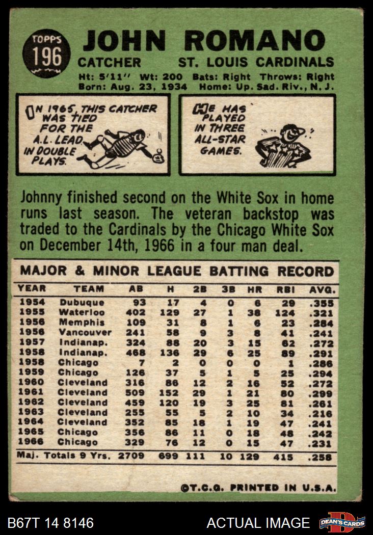 1967 Topps #196 John Romano 1.5 - FAIR