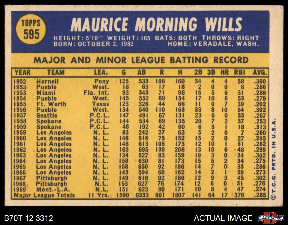 1970 Topps #595 Maury Wills 4 - VG/EX